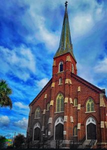 This longstanding Lutheran congregation endured many of Charleston’s historic disasters, including the 1886 earthquake and the hurricane of 1891. The damage sustained from these two disasters led to the addition of a recessed chancel with memorial windows. When Hurricane Hugo struck in 1989, the church was successfully restored, preserving both the original Federal-Baroque design of the building and the Italianate-style steeple.