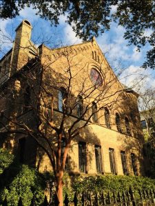 The Great Fire of 1861 caused extensive damage to the church, and the 1886 earthquake reduced what was left of the church to ruins. When the congregation rebuilt between 1890 and 1892, they chose a Richardsonian Romanesque design by New York architects Stephenson & Greene, using bricks salvaged from Mills’ original structure. The new building kept the “Circular” name but adopted a cloverleaf shape with a central tower. Stephenson & Greene’s steeple was destroyed by Hurricane Hugo in 1989 and has since been replaced with its current steeple that is still standing tall today.